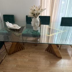 Emerald Green Gold Velvet Glass Dining Set $599Los Angeles, CA