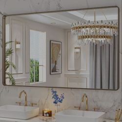LOAAO 60”X36” Bronze Bathroom Mirrors for Vanity, Rounded Rectangle Brushed Bronze Metal Frame Mirror, Anti-Rust, Tempered Glass, Hangs Horizontally o$60City Of Industry, CA