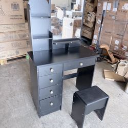 Vanity Set with Mirror, Dressing Table with 5 Drawers & Shelves, Makeup Desk with Cushioned Stool, Vanity Desk for Bedroom, Black$90Phillips Ranch, CA