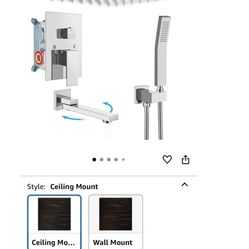 gotonovo Polished Chrome Rain Mixer Shower Faucet Set with Waterfall Tub Spout 12 Inch Square Rainfall Shower Head Ceiling Mount with Handheld Spray R$60Chino Hills, CA