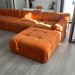 Square Arm 6-piece U Shaped Velvet Modular Free Combination Sectional Sofa with Ottoman in. Orange $720Los Angeles, CA