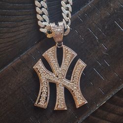 New York Yankees Large Iced Out Rhinestone Pendant Logo with 15mm Necklace$25Pomona, CA
