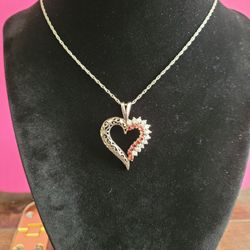 Goldtone Open Heart Pendant Filigree Red and White Crystals on 22" Sterling Silver Chain Necklace F9 $28Diamond Bar, CA