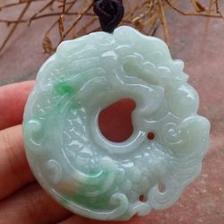Certified Jadeite Jade Hand Carved Green Wealth Dragon Fish Pendant $259Pasadena, CA