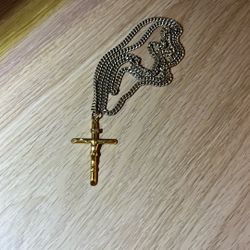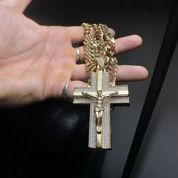 Awesome π!! Large And Heavy Gold Played Cuban Link Chain + Iced Out Crucifix Pendant Chain Necklace !!$30Los Angeles, CA