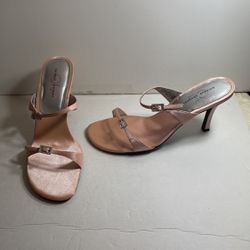 Chinese Laundry Mule Heels Pink Peach Satin & Leather With Diamond Buckles Size 10m$8Beverly Hills, CA
