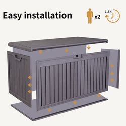 100 Gallon Resin Outdoor Deck Box Waterproof, Plastic Patio Storage Box with Side Handles, Lockable Storage Containers for Patio Furniture Cushions, P$180Chino, CA