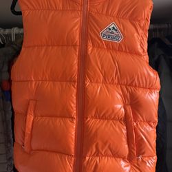 Moncler Authentic Down Puffer Vest with Logo Patch in Orange$500Huntington Beach, CA
