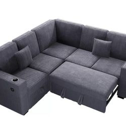 New! Dark Grey Sectional Sofa Bed, Sofabed, Sectional Aofa With Pull-out Bed, Corduroy Sectional, Sofas, Couch, Sleeper Sofa, Plush Sectional With USB$649Chino, CA