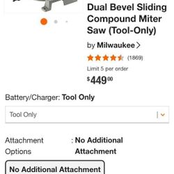 For Sale A Lightly Used Milwaukee M18 FUEL 18V Lithium-Ion Brushless Cordless 7-1/4 in Dual Bevel Sliding Compound Miter Saw Tool-only Model 2733-20 $340Long Beach, CA