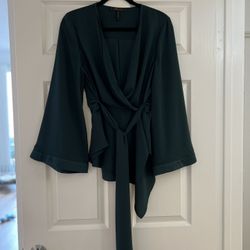 BCBGMAXAZRIA Shawl Collar Belted Top in Hunter Green, Size S$80Los Angeles, CA