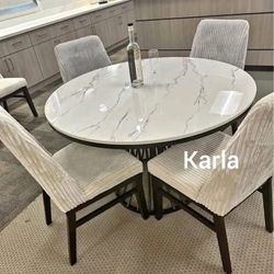Luxurious 5-pc Round Dining Table Set W/ Ivory Velvet Upholstery $475Los Angeles, CA