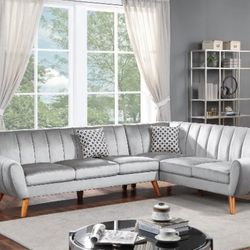 2-pc Sectional Sofa Grey Velvet Upholstered Brand New$499Los Angeles, CA