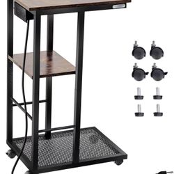 Redlife C Shaped End Table, Small Side Table with Rolling Wheels for Couch with Charging Station, High Slide Under Sofa TableSnack Side Table with Sto$25Pomona, CA