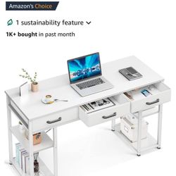 ODK Office Small Computer Desk: Home Table with Fabric Drawers & Storage Shelves, Modern Writing Desk, White, 48"x16"$80Chino, CA