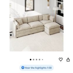 Beautiful! 4-pc Sectional Sofa With Ottoman Ivory Corduroy Fabric $490Westchester, CA