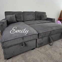 Stylish 2-Pc Corduroy Sectional Sofa With Pullout Bed, Storage, And USB Port NEW$399Norwalk, CA