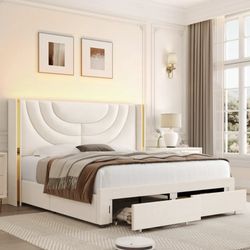 Full Size Velvet Bed Frame With Led Lights And 2 Storage Drawers$140Irwindale, CA