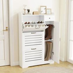 New in a sealed box Narrow Shoe Storage Cabinet with 3 Flip Drawers, Doors & Adjustable Shelves, Slim Shoe Rack Cabinet for Entryway Closet, Deodorizi$65Chino Hills, CA