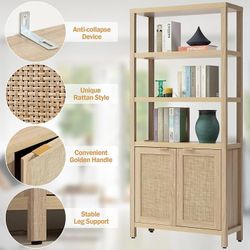 Bookshelf 5 Tier Book Shelf Rattan Boho 71" Tall Bookcase with Doors Storage Shelves Large Bookshelves Farmhouse Bookcases Library Book Case for Livin$100Sierra Madre, California