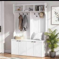 60" White Entryway Hall Tree Bench w/ Storage & Hooks$120Los Angeles, CA
