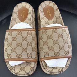 Gucci GG Canvas Slide Sandals Beige Ebony Sundial EU 39+ US 9 New$490Los Angeles, CA