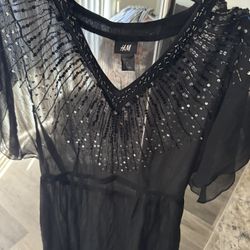 H&M Womens Tunic Dress Swimsuit Cover Up Sleeveless V Neck W/Sequins BlackSize 8$8Inglewood, CA