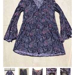 Women’s Tunic length Size 14 / 16 Sleeve Length 3/4. Color Blue with Silver color accent in the front. Brand New Has been hanging in a closet. $15Artesia, CA