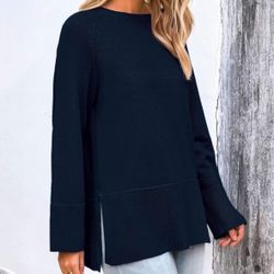 Knit Sweater Long Sleeve Pullover Crewneck Split Hem Loose Oversized Tunic Sweater Top, blue, R29, Medium$15Costa Mesa, CA