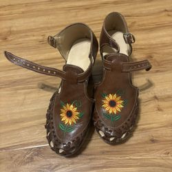 Huarache Sandals Wedge Embroidered Brown and Top$15Cypress, CA