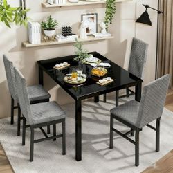 5-Piece Glass 4 PU Leather Chairs Dining Table Set, Black and grey$130Pomona, CA