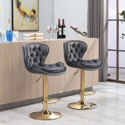 Mid Century Modern Swivel Bar Stools Set of 2, Velvet Upholstered Barstools with Ergonomic Backrest and Golden Base, Adjustable Counter Height Bar Cha$120City Of Industry, CA