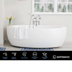 gotonovo Deck Mount Tub Bathtub Faucet Clawfoot with Handheld Shower 6 Inch Polish Chrome Telephone Shaped Sprayer Showerheld Double Cross Handle C24 $60Santa Fe Springs, CA