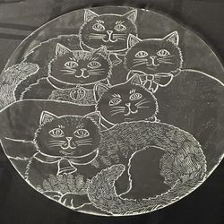 Vintage Pilgrim Glass etched glass platter featuring a group of cats. 13”$35Anaheim, CA