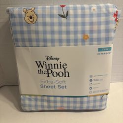 Winnie the Pooh Twin 3-Piece Soft Sheet Set Blue Plaid Gingham Winnie Floral$22Buena Park, CA