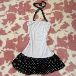 Vintage-Inspired Polka Dot Halter Mini Dress – Sheer Ruffle Hem 🤍🖤 Y2K Coquette / Balletcore XS-S$35Los Angeles, CA
