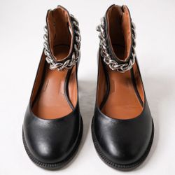 Givenchy Black Leather Chain Ankle Strap Flats, Size 39$225Compton, CA