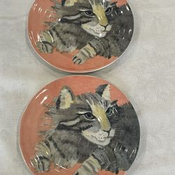 2 Anthropologie Carole Akins hand-painted tabby cat dessert plates. 8.5”$15Anaheim, CA