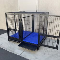 (NEW) $190 Folding Heavy Duty Dog Cage 41x31x34” Double-Door Stackable Kennel w/ Divider, Plastic Tray $190Rosemead, CA
