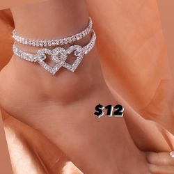 Rhinestone Heart &butterfly Charm Anklet Cadena Del Pie $12Los Angeles, CA