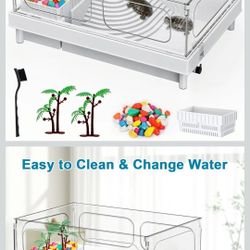 Small Turtle Tank with Filter, Turtle Aquarium, Acrylic Turtle Terrarium with Basking Platform, Bottom Drainage, Multi- Function Ar$20Lynwood, CA