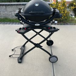 Weber Q Q1200 Small Portable Propane Grill BBQ Camp Asador With Mobile Stand Cart And Cover$150Diamond Bar, CA