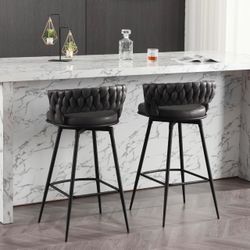 Modern Bar Stools Set of 2, 30" Bar Height Barstools, 180° Swivel Suede Fabric Stool Chairs with Woven Back and Footrest for Kitchen Island, Cafe, Pub$100El Monte, CA