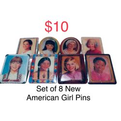 $10 AMERICAN GIRL DOLL CIRCLE OF SMILES PORTRAIT PINS 2003 HALLMARK LOT 8 SET BROOCH Kit Josefina Addy Kaya Samantha Kirsten Felicity Molly CLOTHING$10Ontario, CA
