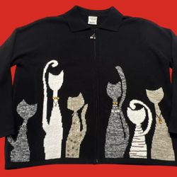 Vtg Allison Daley Size M Black Cat Silhouettes Beaded Full Zip Cardigan Sweater $25Los Angeles, CA