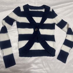 Small blue white striped knit crop top sweater cardigan y2k Emo Nautical jjacket $10Upland, CA