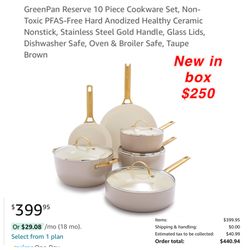 New GreenPan Reserve Hard Anodized Healthy Ceramic Nonstick 10 Piece Cookware Pots and Pans Set, Gold Handle, PFAS-Free, Dishwasher Safe, Oven Safe, T$250Juniper Hills, CA
