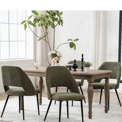 Green Dining Chairs Set of 4 Mid Century Modern Kitchen Dining Room Chairs with High Backs Boucle Fabric Upholstered Accent Chair with Metal Legs for $130El Monte, CA