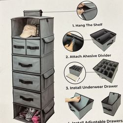 7-Shelf Hanging Closet Organizer with 5 Different Drawers, Hanging Closet Shelves Storage and 8 Mesh Pockets, Closet Organization and Storage for Ward$12Rosemead, CA
