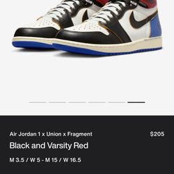 Fragment x union jordan 1 varsity red size 13$400Irwindale, CA